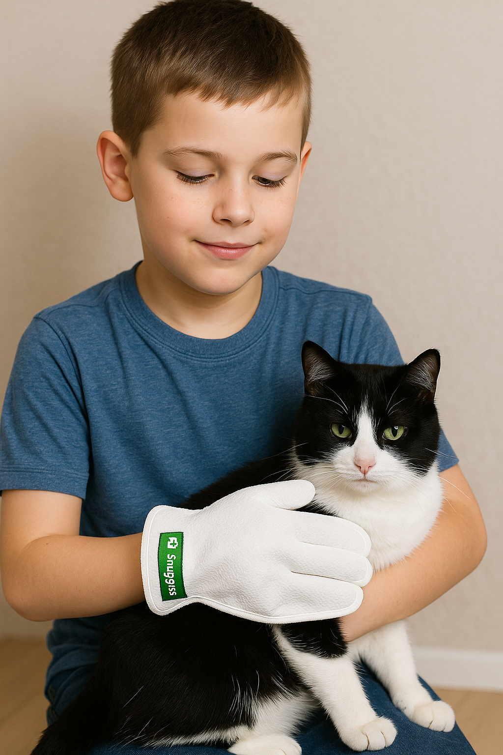 With FurSnuggles™ one glove replaces constant bathing. It quickly wipes away fur, dirt, and dander, keeping pets fresh, clean, and comfortable without the stress of frequent baths—easy grooming, happy pets, cleaner homes.