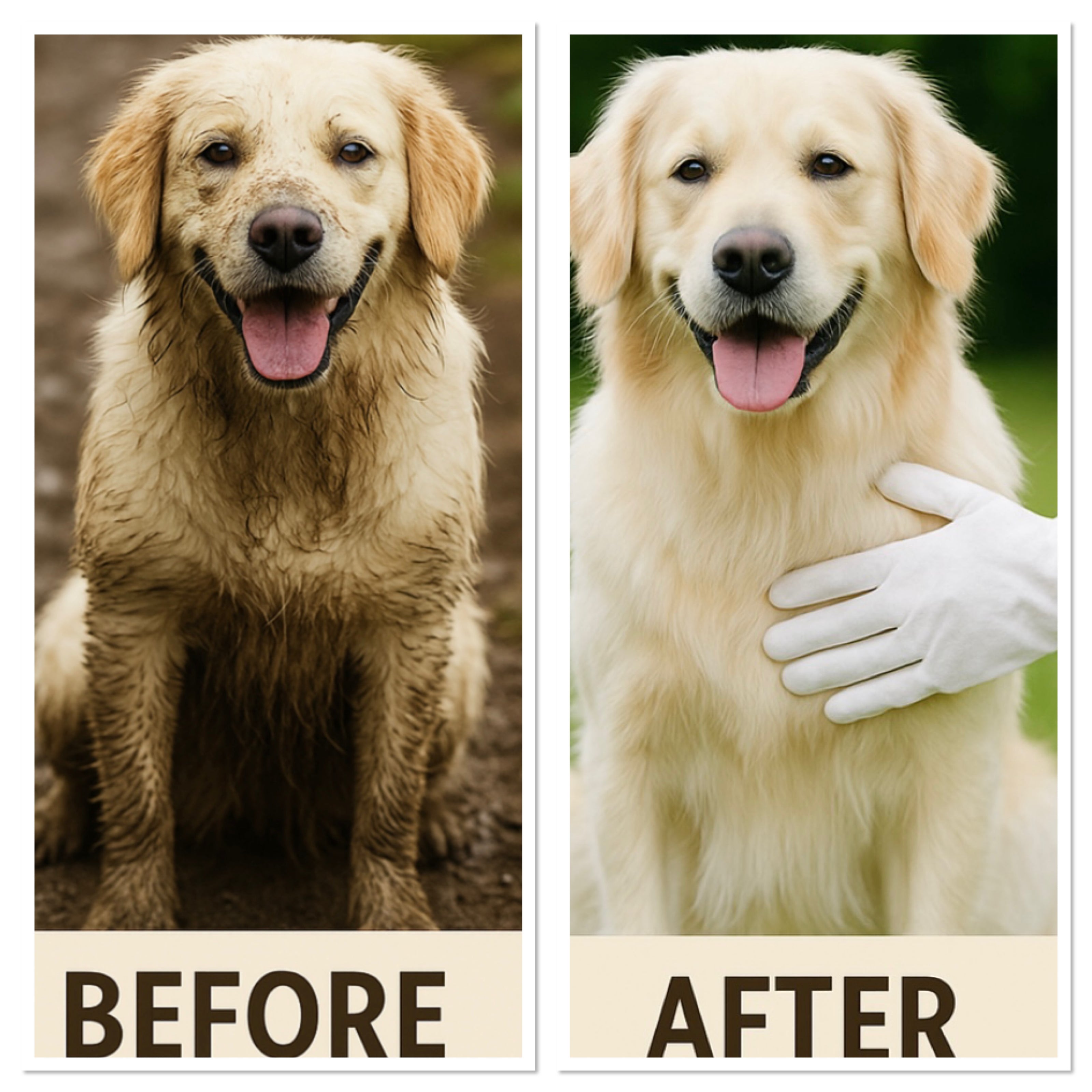 "I can clean my golden retriever after muddy park runs in minutes. No water, no fuss — just a happy dog!"